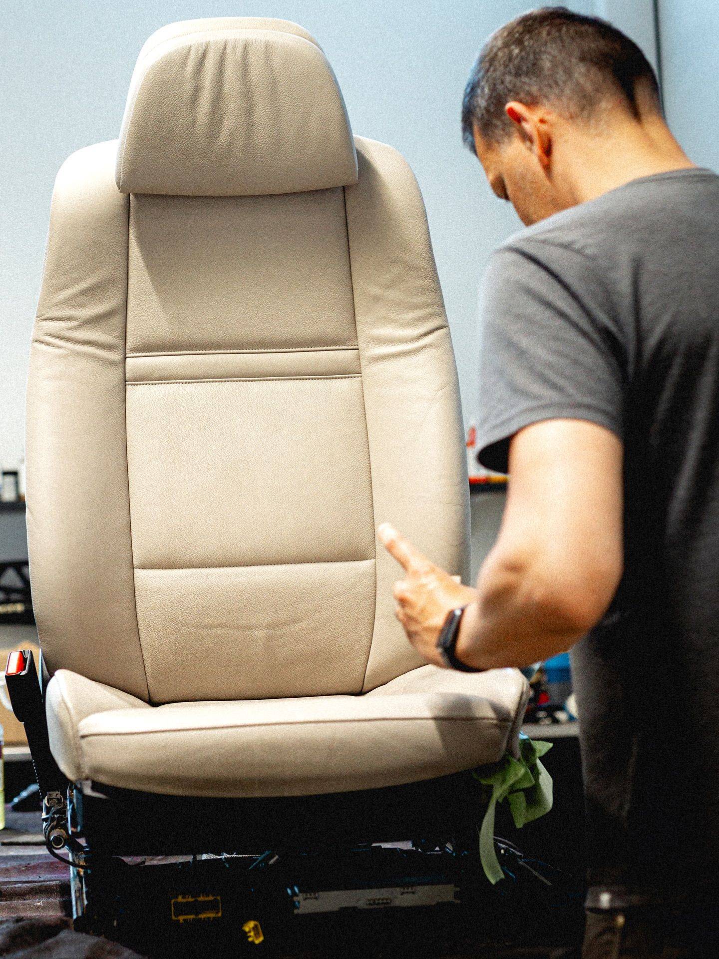 Nöjd kundVäldigt fin renovering av framstolar i ljust skinn. Som nya! Rekommenderar starkt.