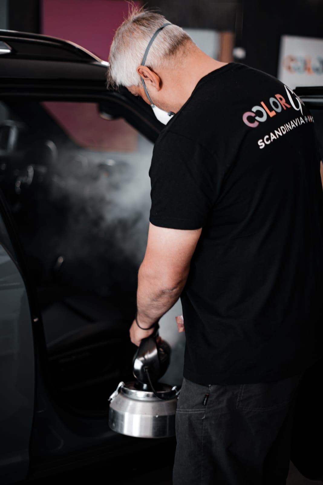 Området runt hålet rengörs noggrant med ColorGlos unika rengöringsprodukter.